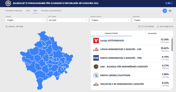 Ndërkohë, në platformën elektronike të Komisionit Qendror të Zgjedhjeve (KQZ), të dhënat për rezultatet e votimit me postë po përditësohen vazhdimisht.