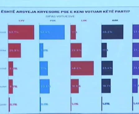 Një sondazh i fundit i UBO Consulting tregon arsyet kryesore pse qytetarët e Kosovës zgjedhin partitë politike në zgjedhjet e fundit. Sipas rezultateve, motivi kryesor për votuesit ndryshon në varësi të partisë që kanë votuar. Pyetja: Arsyeja pse keni votuar, sipas sondazhit. Vetëvendosje, Albin Kurti: Për linderin e partisë: 53.7 për qind. PDK, Bedri Hamza: Për linderin […]